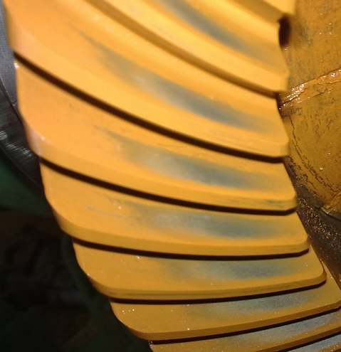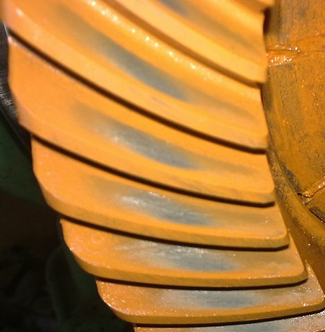 主從動(dòng)錐齒輪裝配時(shí),印痕看大輪凸面和凹面。