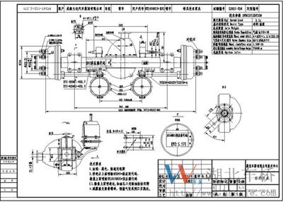 2401T152-010-5.571主減速器總成噪音低,傳遞扭矩大。其設(shè)計(jì)突緣端面至橋殼中心線距離為306mm(見如下安裝尺寸圖)。主從動(dòng)錐齒輪噪音低、壽命長等特點(diǎn),其傳遞扭矩7000N.M,裝配成總成后噪音在82dB以下(主齒轉(zhuǎn)速2200r/min),壽命可達(dá)70萬次以上,深受用戶的好評(píng)。