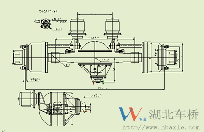 2402B104-0101-4.33主減速器總成,設(shè)計(jì)突緣端面至橋殼中心線距離為318mm(見(jiàn)如下安裝尺寸圖)。主、從動(dòng)錐齒輪是專(zhuān)門(mén)針對(duì)客車(chē)要求噪音低、壽命長(zhǎng)等特點(diǎn),其傳遞扭矩18000N.M,裝配成總成后噪音在84dB以下,壽命可達(dá)70萬(wàn)次以上,深受用戶(hù)的好評(píng)。