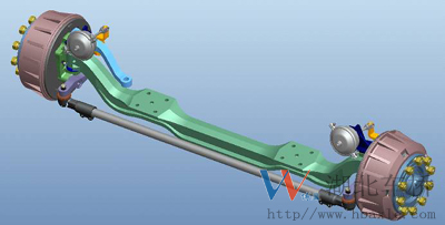 1.前軸為整體鍛造結(jié)構(gòu),采用加強設(shè)計,承載能力強; 2.車輪輪輞定位方式可采用球面定位或止口定位;3.輪距、板簧距可靈活調(diào)整;