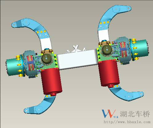 | 車橋型式 | 鑄造橋殼、氣簧懸臂、二級(jí)減速、對(duì)稱門式,精磨齒 | ||
