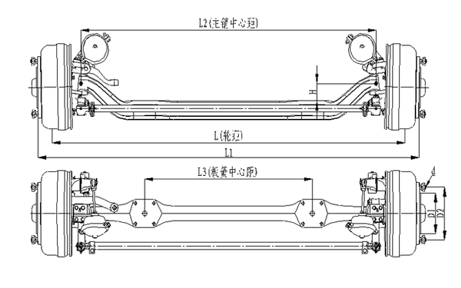 1.前軸為整體鍛造結構,承載能力強;2.采用專用客車制動鼓(帶散熱孔及散熱筋)和摩擦片,具有散熱效果好,使用壽命長的優(yōu)點;3.車輪輪輞定位方式可采用球面定位或止口定位;4.輪距、板簧距可靈活調整;
