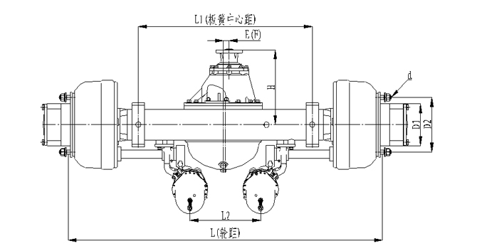 產(chǎn)品特點(diǎn):1.橋殼加強(qiáng)型設(shè)計(jì),承載能力強(qiáng);2.車輪輪輞定位方式可采用球面定位或止口定位;3.板簧距與輪距可以調(diào)整